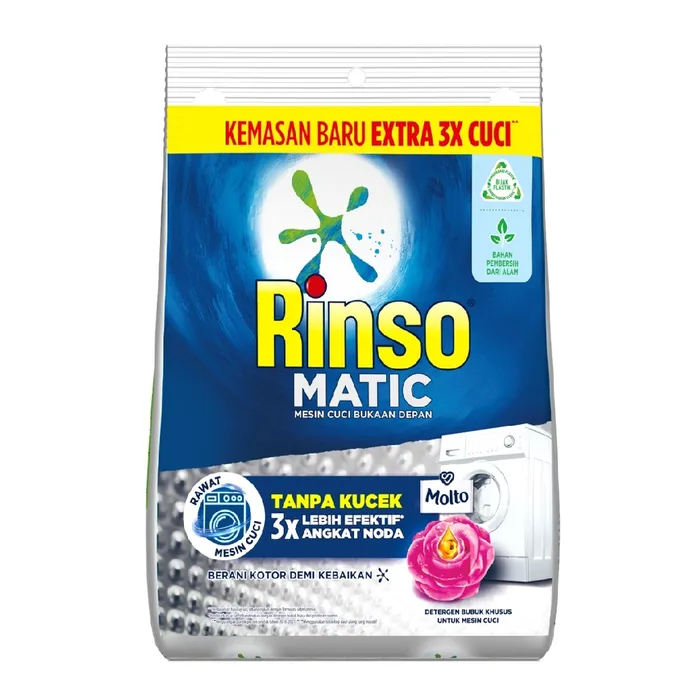 Rinso Molto Detergen Pertama Bunuh VIRUS*! Detergen Anti Noda Kini hadir dengan formulasi 3X lebih efektif Angkat Noda dan bunuh 99.99% BAKTERI & VIRUS SARS-CoV 2*. Menghilangkan noda membandel TANPA KUCEK. Detergen Matic Rinso BARU dilengkapi teknologi anti residu dan rendah busa yang MERAWAT MESIN CUCI BUKAAN DEPAN TETAP AWET. Detergen dengan formula High Efficiency yang membuat air dan listrik lebih hemat. Segarkan kembali pakaian Anda dengan keharuman Pink Rose, Jasmine, dan Apple yang tahan hingga 21 hari. Anti Noda, Anti Bakteri & Virus, Anti Bau Apek dengan Rinso Deterjen Bubuk. Tersedia juga dalam deterjen cair konsentrat dan telah tersertifikasi halal. Dengan tagline Berani Kotor Demi Kebaikan, Rinso mengajak kamu untuk berani berbuat kebaikan tanpa takut kotor. Setelah sukses mengadakan World CleanUp Day, Refill Station, dan inovasi pertama di Indonesia kemasan fleksibel hasil daur ulang. Di tahun 2022, Rinso membawa langkah lebih jauh membawa kebaikan untuk lingkungan dengan inovasi bahan pembersih dari alam, surfaktan mudah terurai, serta kemasan Rinso DAPAT DIDAUR ULANG. Bersama Rinso, Yuk Mulai Jadi #GenerasiPilahPlastik dan wujudkan bumi bersih! *Berdasarkan hasil uji lab terhadap bakteri E. coli, E. hirae, dan virus SARS-CoV-2 dengan waktu kontak 60 menit. KEMENKES RI PKD 20202121991 Unilever Official Store Merupakan toko resmi Unilever Indonesia yang menyediakan seluruh produk Unilever. Berkerjasama dengan mitra penjualan kami, Unilever Indonesia memastikan originalitas dan kualitas dari produk yang disediakan. Unilever Official Store menyediakan lebih dari 40 brand yang telah setia menemani masyarakat Indonesia dari berbagi macam kategori antara lain : - Personal Care : Axe, Citra, Clear, Close Up, Dove, Fair and Lovely, Lifebuoy, Love Beauty and Planet, Lux, Pepsodent, Ponds, Rexona, Sunsilk, Tresemme, Vaseline, Zwitsal, dll - Home Care : Molto, Rinso, Sunlight, Superpell, Vixal, Wipol, Sahaja, dll - Food & Refreshment : Bango, Royco, Jawara, Buavita, dll Brand kami juga memiliki tujuan mulia (purpose) untuk selalu berupaya untuk mengurangi jejak lingkungan dan manfaat positif bagi masyarakat. Dapatkan produk Unilever dengan harga yang terjangkau dan promo yang menarik di Unilever Official StoreNo reviews found