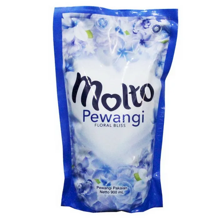 Pewangi atau parfum ternyata tidak hanya sekedar membuat aroma tubuh dan pakaian Anda menjadi lebih wangi, namun bisa juga membangkitkan mood agar tetap bersemangat dalam menjalani aktivitas. Maka dari itu, pilihlah pewangi pakaian yang berkualitas misalnya Molto Pewangi Pakaian. Molto Pewangi pakaian merupakan cairan pewangi dan pelembut pakaian yang digunakan untuk membuat pakaian Anda menjadi lebih wangi dan lembut sepanjang hari. Selain itu, pewangi dan pelembut pakaian ini juga memiliki keunggulan yang mampu mempertahankan bentuk pakaian, mudah disetrika, wangi yang harum dan segar. Sementara untuk ukurannya, pewangi pakaian dari Molto menyediakan 2 pilihan ukuran, yakni 900ml dan 1800ml.Pink (Flower Shower) dan Blue (Floral Bliss)