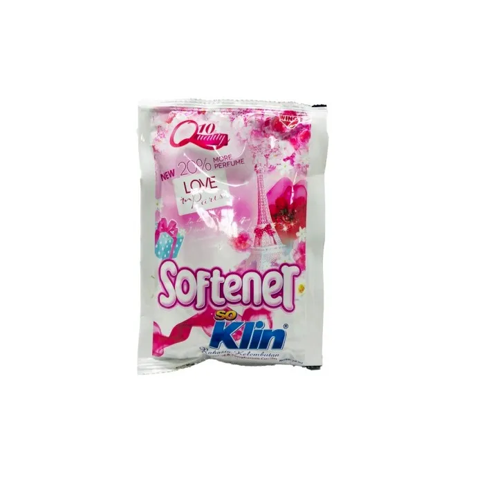 So Klin Softener merupakan deterjen cair konsentrat yang diformulasi memadukan kekuatan concentrate formula yang membersihkan dengan mudah dan cepat dengan formula anti bakteri yang membuat pakaian tidak bau meski direndam lama.