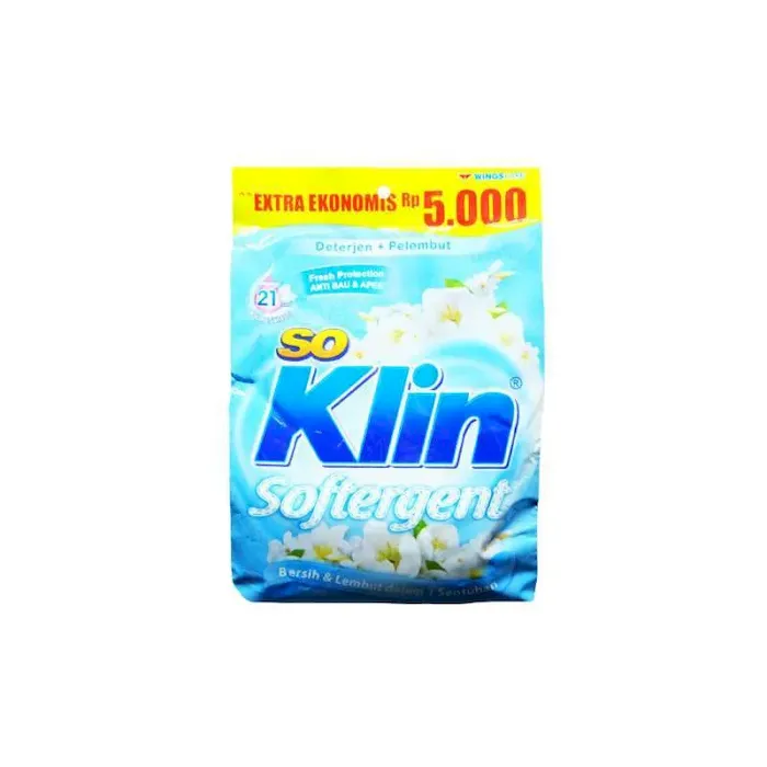 Rasakan kesegaran SOKLIN Deterjen Bubuk Velvet Orchid yang mampu menyegarkan pakaian keluarga dalam beraktivitas seharian. Pakaian menjadi bersih, lembut, dan wangi dalam satu sentuhan. So Klin Softergent merupakan solusi terbaik untuk mencuci secara ekonomis dan praktis. Pakaian menjadi bersih, 2x lebih lembut, & 2x lebih wangi. KEUNGGULAN : 1. Wangi 21 Hari (Aroma Sensory) : Teknologi aroma sensorinya menjaga pakaian tetap wangi selama 21 hari. 2. Fresh Protection (ANTI BAU & APEK) : Antibacterial agentnya membuat pakaian terlindungi dari bau apek meskipun dijemur di dalam ruangan atau digunakan beraktivitas seharian. 3. Hilangkan Noda Membandel : So Klin Softergent dapat menghilangkan noda membandel hingga ke serat kain dengan mudah. 4. Butiran Pelembut 2x Lebih Banyak : So Klin Softergent membuat serat kain lebih mengembang, lembut, dan halus. 5. Lembut dan Tidak Panas di Tangan.No reviews found