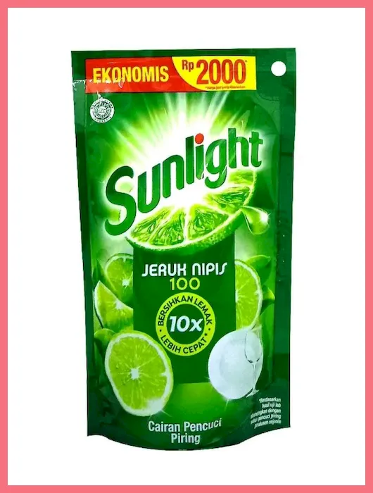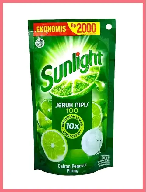 Kini Anda tidak akan merasa kesulitan dalam urusan mencuci piring, karena Sunlight punya banyak varian produk pencuci piring yang ampuh menghilangkan noda lemak yang sulit dibersihkan. Khusus untuk varian Sunlight Jeruk Nipis 100 yang baru, dikemas dalam ukuran botol 400ml & 750ml. Sedangkan untuk kemasan ekonomis (pouch) hadir dalam beberapa ukuran 90ml / 200ml / 400ml / 800ml / 1600ml. Dari setiap tetes cairan pencuci piring Sunlight Jeruk Nipis 100 diperkaya dengan estra jeruk nipis asli sehingga dapat membersihkan lemak secara maksimal.