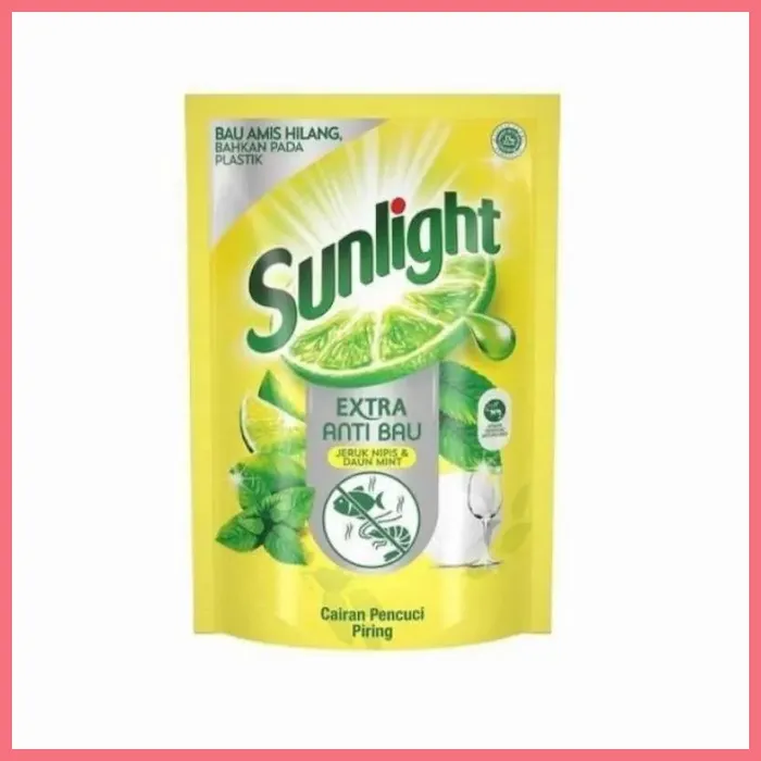 Sunlight Anti Bau membersihkan secara optimal dengan busanya yang berlimpah. Pada setiap tetesan mengandung formula esktrak jeruk nipis asli diperkuat dengan daun mint yang memberikan daya menghilangkan lemak serta bau yang sulit hilang dengan cepat. Anda dapat membersihkan piring dengan lebih cepat dan mudah. Mampu membersihkan wadah plastik sekalipun dengan bersih. Cara Penanganan : Bila terkena mata, bilas dengan air bersih. Bila terminum, minumlah air putih yang banyak dan segera hubungi dokter. Cara Penggunaan : Larutkan 1 sendok the sunlight cair ke dalam mangkok yang berisi 1/2 gelas air. PLU : 20102725No reviews found