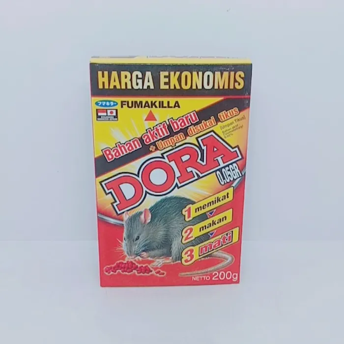 Dora Umpan Tikus Adalah racun tikus tanpa umpan, ampuh membasmi tikus, aman, hemat, dan praktis digunakan. Baik dijauhkan dari jangkauan anak-anak.