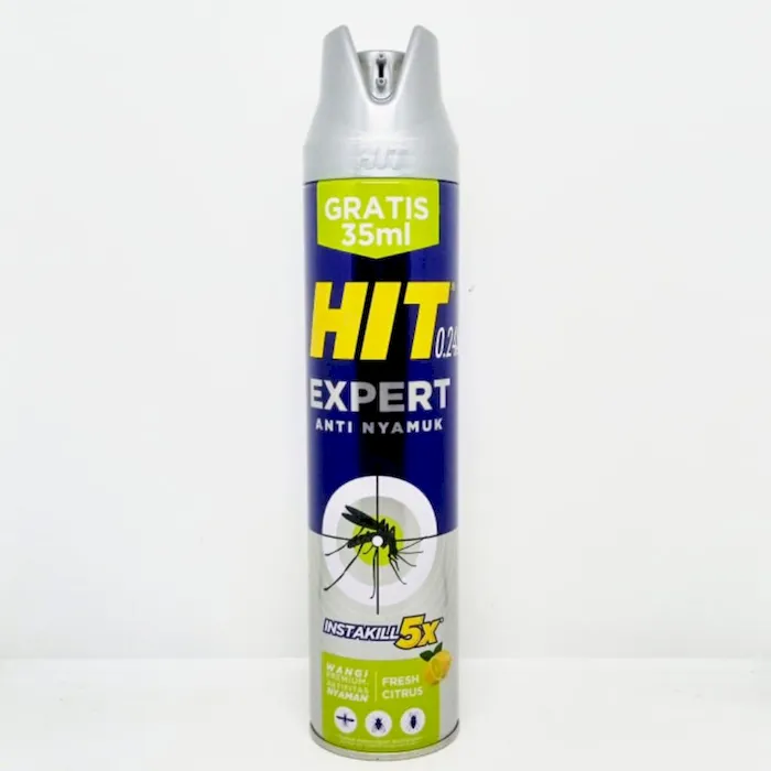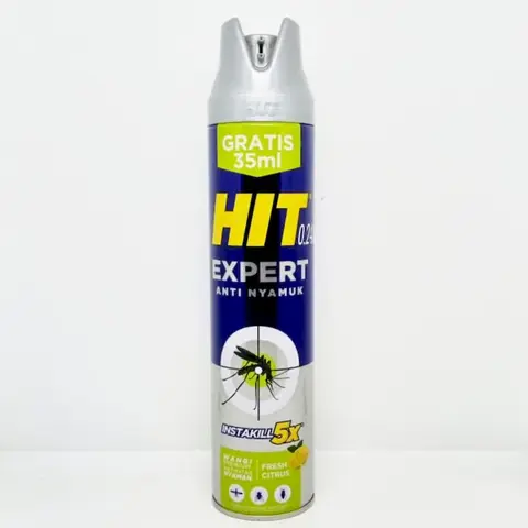Merupakan cairan ampuh membasmi nyamuk dan serangga yang praktis berbentuk aerosol. HIT Aerosol ini memiliki formula baru yang jauh lebih efektif secara cepat mengusir nyamuk dan serangga di ruangan Anda, serta dengan aroma yang natural dan nyaman.No reviews found