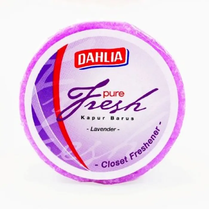 Dahlia Pure Fresh Lavender mengeluarkan keharuman yang segar, efektif menghilangkan bau yang tidak sedap di lemari dan rak buku, serta memberikan perlindungan dari ngengat, kutu dan penjamuran. Cara penggunaan : Buka plastik pembungkus kapur barus ini, kemudian gantungkan Perhatian : 1. Jauhkan dari jangkauan anak-anak 2. Jangan menggunakan Dahlia Pure Fresh Lavender dengan pembasmi ngengat yang lain. Kode : K241LA-N Varian : Orange, Lemon, Lavender, Spring Bouquet Shelf Life : 24 month * Diproduksi oleh: PT UNITAMA SARI MAS