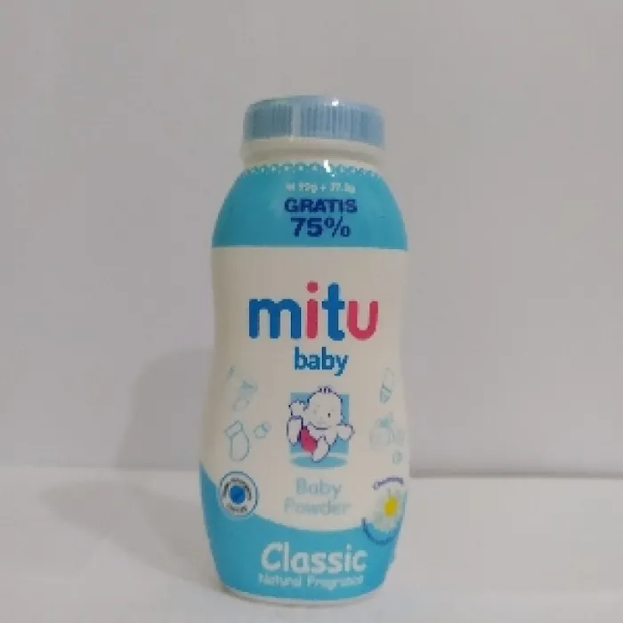 Mitu Baby Powder menggunakan talcum powder murnindan steril yang halus dan lembut. Diformulasikan secara effektif dapat menyerap keringat bayi menjadikan kulit bayi kering dan lembut. Diperkaya dengan canola oil, pelembab alami yang dikenal dapat membantu melembutkan kulit bayi. Terbuat dari bahan bedak steril dan natural corn starch yang menyerap keringat untuk melindungi kulit bayi dari biang keringat Teruji Hypo Allergenic oleh pakar alergi kulit, di formulasikan khusus untuk bayi yang halus dan berkulit sensitif