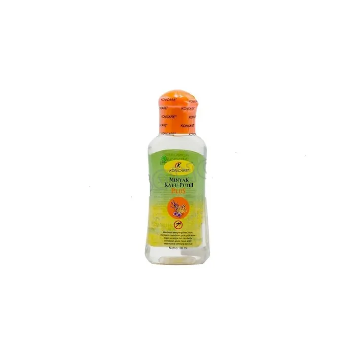 KONICARE Minyak Kayu Putih Plus bermanfaat membantu menghangatkan badan, meredakan gatal akibat gigitan serangga serta meredakan gejala masuk angin seperti kembung dan mual.