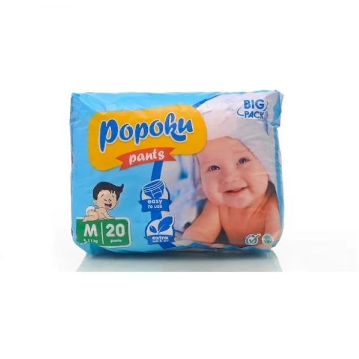 Popoku Pants adalah popok jenis celana yang nyaman untuk bayi. Terbuat dari bahan dengan kualitas baik untuk memastikan kenyamanan dan kesehatan kulit bayi Anda. Popoku juga sudah mengantongi sertifikat Halal dan juga Sertifikat dari Dinkes, sehingga sangat aman untuk digunakan. BREATHABLE SYSTEM Bahan yang digunakan memiliki emboss untuk sirkulasi udara agar pada saat digunakan pada bayi tidak mudah lembab. ANTI BACTERIAL SYSTEM Hanya menggunakan material yang higienis, sehingga bayi tidak mudah iritasi. EXTRA ABSORBENCY Dapat menyerap kencing bayi secara maximal, sehingga bayi tetap nyaman, kulit bayi tetap lembut dan terhindar dari iritasi. WETNESS INDICATOR SYSTEM Mempermudah untuk mengetahui popok tersebut sudah penuh dan waktunya harus digantiNo reviews found