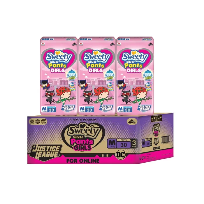 Merupakan popok bayi lembut bermodel celana yang bisa menjadi pilihan tepat Anda. Sweety Popok Silver Pants menggunakan bahan yang lembut & berpori untuk mencegah iritasi pada kulit, sekaligus membuat sirkulasi udara menyeluruh. Bahan ini pun juga cepat menyerap pipis bayi dan menyimpannya dengan baik agar popok tetap kering saat bersentuhan dengan kulit bayi.No reviews found