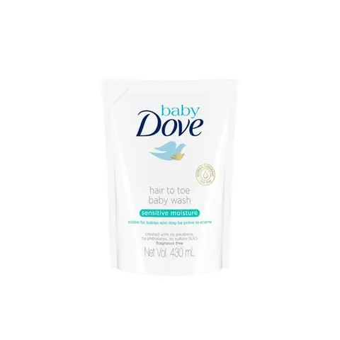Berikan perawatan yang dibutuhkan kulit sensitif bayi Anda dengan Baby Dove Sensitive Moisture - Hypoallegenic + Fragrance free Hair-to-Toe wash. Dengan formula Eczema Prone Skin dan Dibuat dengan 100% Skin Natural Nutrients dan Prebiotic Moisture untuk Melindungi dan Melembabkan kulit bayi Anda. Pediatrician tested, Dermatologist approved, gentle for new born, no dyes/no paraben/no sulfates/no phthalates, pH NeutralNo reviews found