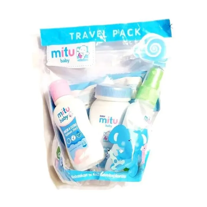 Mitu baby travel pack isi 4 macam.Mitu baby travel pack terdiri dari : 1 pcs mitu baby tissue basah extra thick isi 10 sheet 1 pcs mitu baby sabun mandi 2 in 1 50 ml 1 pcs mitu baby powder bedak 50 gr 1 pcs mitu baby cologne (parfum bayi) 50 ml Tersedia kemasan warna biru dan pink.No reviews found