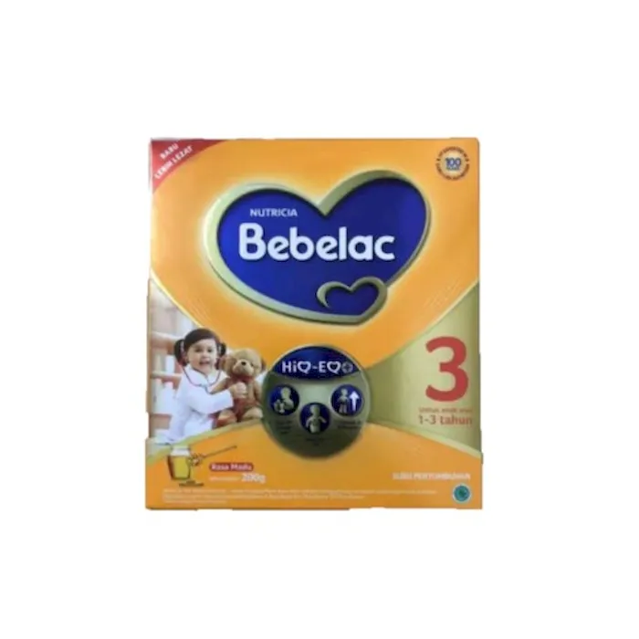 BEBELAC 3 merupakan susu bubuk untuk pertumbuhan anak usia 1-3 tahun. Susu ini memiliki pilihan rasa yang lezat serta dilengkapi nutrisi Minyak ikan, Omega 3, Omega 6, FOS:GOS 1:9, 13 Vitamin & 9 Mineral. Susu ini merupakan nutrisi tepat dari Bebelac dan stimulasi ibu, untuk dukung anak tumbuh hebat.