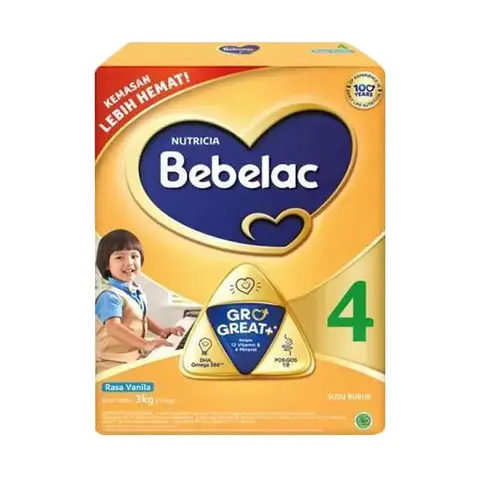 Nutricia Bebelac 4 hadir dengan varian rasa Vanilla dan Madu yang lezat serta banyak disukai oleh anak-anak. Dengan kandungan 12 Vitamin dan 4 Mineral didalamnya membuat Susu Bebelac 4 tinggi akan Kalsium, Zat Besi, Iodium dan Vitamin C yang dapat membantu kepadatadan tulang dan gigi, daya tahan tubuh yang baik dan gizi seimbang. Tidak hanya itu saja, Nutricia Bebelac 4 terdiri dari berbagai ukuran kemasan yang bervariasi mulai dari 200g, 400g, 620g, 800g, 1000g, 1800g hingga 3000g yang dapat Anda pilih sesuai dengan kebutuhan anak Anda sehari-hari. Jadi tunggu apalagi, terus dukung si Kecil tumbuh hebat dimasa Pra-Sekolahnya dengan nutrisi optimal dari Nutricia Bebelac 4 sekarang juga.