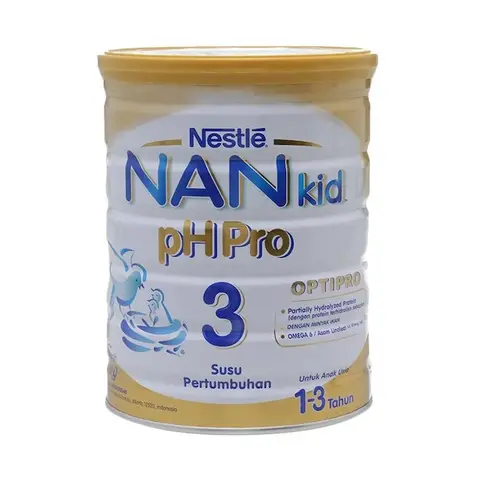 Adalah susu formula lanjutan yang sangat baik untuk di konsumsi buah hati Anda. Susu ini banyak mengandukng vitamin penting yang membatu pertumbuhan fisik, pola pikir dan kreatifitas si kecil, susu ini juga mampu mencukupi gizi si kecil karena susu ini merupakan produk kualitas terbaik. Nestle NAN pHPro Tahap 3 - memiliki rasa yang sangat nikmat sehingga banyak diminati buah hati Anda. Kandungan Kalsium yang ada dalam susu ini juga akan memberikan nutrisi yang sangat baik untuk pertumbuhan tulang dan menjaga kepadatan tulang si kecil.No reviews found