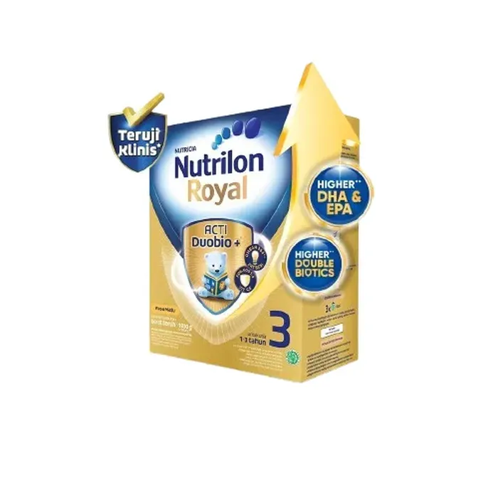 Saat ini terdapat berbagai merek produk susu pertumbuhan untuk si Kecil, salah satunya adalah Nutrilon Royal 3 ACT Duobio+ . Nutrilon Royal 3 ACT Duobio+ merupakan susu formula yang untuk anak usia 1-3 tahun yang memiliki kandungan nutrisi lebih tinggi untuk mendukung daya tangkap dan perkembangan sistem saraf si buah hati. Ditambah lagi, Nutrilon Royal 3 ACT Duobio+ juga terbukti secara klinis dapat membantu memperkuat daya tahan tubuh si Kecil, sehingga si Kecil bisa bebas beraktifitas dengan baik