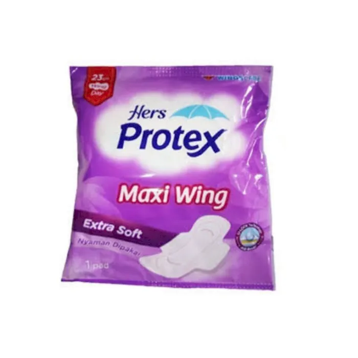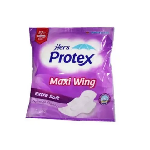 Hers Protex merupakan salah satu merek pembalut lokal untuk menampung cairan mesntruasi wanita. Selain itu, pembalut yang diproduksi oleh PT Wings Surya ini terbuat dari bahan berkualitas, seperti layered nonwoven. Itu berarti, pembalut tersebut memiliki permukaan yang sangat lembut, sehingga tidak menimbulkan iritasi. Sama seperti merek lain, Hers Protex juga menghadirkan pembalut siang dan juga malam hari. Produk pembalut yang pertama adalah Hers Protex Maxi Wings. Produk ini merupakan pembalut siang dengan sayap pelindung dan memiliki panjang 23 cm. Produk yang memiliki kemasan ungu ini diformulasikan dengan U-Lock technology. Formula tersebut mampu mengunci cairan supaya tidak bocor. Selain itu, ada pula formula ultra gel yang dapat menampung cairan lebih banyak dan menyerap lebih cepat. Bahkan, permukaan dari pembalut ini memiliki formula air soft, sehingga nyaman untuk dipakai. Produk pembalut berikutnya adalah Hers Protex Extra Maxi. Berbeda dengan Maxi Wings, pembalut ini tidak dilengkapi dengan sayap pelindung. Meski tidak memiliki sayap, pembalut ini tetap nyaman dipakai karena memiliki formula U-Lock technology. Sama seperti Maxi Wings, pembalut dengan kemasan merah muda ini juga memiliki formula ultra gel yang bisa menyerap dan menampung cairan lebih cepat. Selain itu, pembalut yang memiliki 24 pads ini juga memiliki permukaan yang lembut, sehingga tidak mudah membuat kulit area kewanitaan tidak iritasi. Jika sebelumnya merupakan pembalut untuk siang hari, maka Hers Protex Comfort Night untuk malam hari. Pembalut malam ini juga memiliki formula U-Lock technology. Selain itu, pembalut yang dikemas plastik warna biru ini memiliki panjang 30 cm dan dilengkapi dengan sayap pelindung di samping dan belakang. Dengan bantuan wings, pembalut ini tidak mudah berkerut dan bergeser saat dipakai. Bukan itu saja, sayap pelindung pada bagian belakangnya lebar, sehingga mampu mencegah kebocoran. Bahkan, pembalut malam dari Hers Protex ini memiliki permukaan 3 kali lebih kering, sehingga tidak mudah lembap. Pembalut ini dapat membantumu untuk tetap nyaman saat tidur di sepanjang malam.