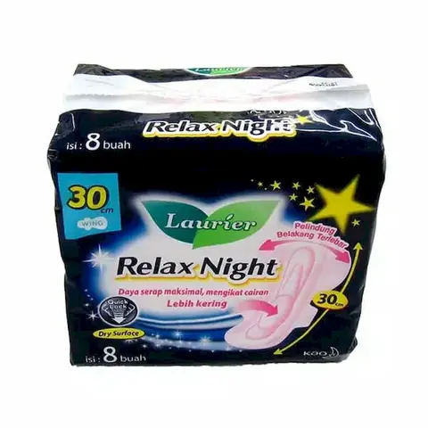 Laurier Relax Night Wing 30cm Pembalut Sayap Ukuran 30cm Penggunaan Malam Hari