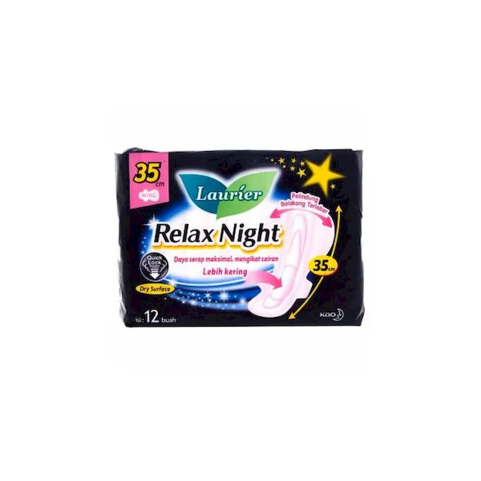 Kondisi datang bulan bagi sebagian wanita menjadi kondisi yang sangat tidak nyaman. Ketika mendapati kondisi ini, seorang wanita perlu menyesuaikan diri terhadap beberapa hal. Umumnya, ada wanita yang merasakan sakit di bagian perutnya, nyeri di bagian pinggang dan lain-lain. Tidak jarang pula wanita yang lebih sensitif dalam beragam hal sehingga mudah sekali marah dan meluapkan emosinya ketika datang bulan. Atas beberapa kondisi ini, wajib bagi wanita untuk menyediakan pembalut agar aktivitas yang dilakukan tetap nyaman. Anda dapat menggunakan pembalut Laurier Relax Night, yang merupakan pembalut ketika malam hari yang dibekali inti penyerap instan dan mampu menyerap cairan serta gumpalan dengan maksimal. Keunggulan lainnya dari Pembalut Relax Night ini adalah dilengkapi pelindung belakang lebar dan didukung teknologi Flexi Fit yang lentur mengikuti bentuk dan gerak tubuh tanpa ada celah. Sehingga dapat mencegah bocor pada posisi tidur apa pun. Tidak hanya itu saja, Pembalut malam ini juga dilengkapi pelindung belakang lebar dengan sayap pelindung, mencegah pembalut bergeser dan tidak menyebar di permukaan. Laurier Relax Night dapat memberikan perlindungan tidur bebas bocor sampai 10 jam.