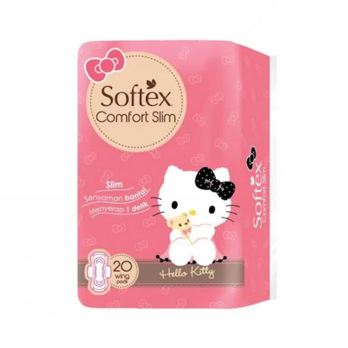 • Softex Comfort Slim Hello Kitty, pembalut remaja dengan permukaan lembut dan nyaman yang bikin hari kamu jadi tambah happy.