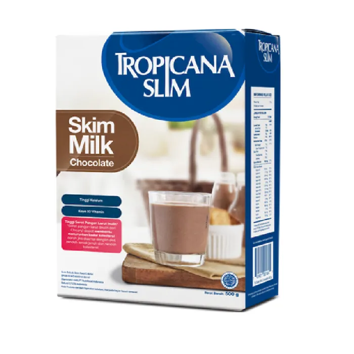 Tropicana Slim Milk Chocolate Mengapa Tropicana Slim Milk Skim? Bebas lemak dan lemak jenuh (0 gram lemak/saji), sangat baik untuk cegah kegemukan...