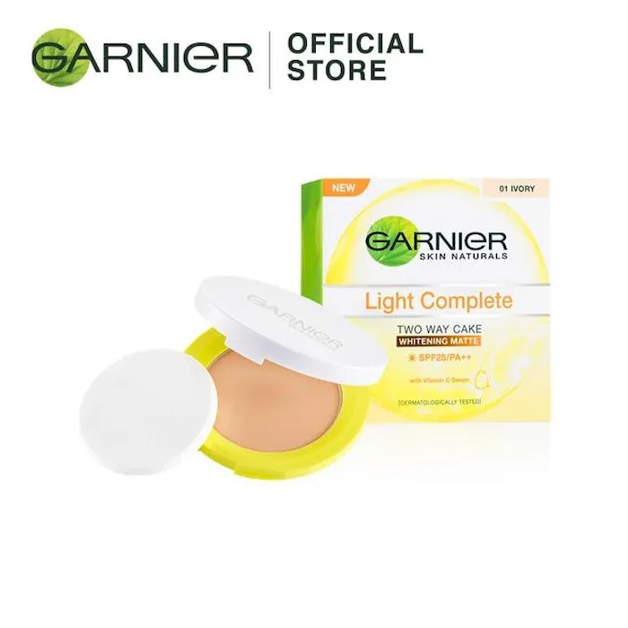 Adalah bedak padat dari merek ternama dari Garnier. Bedak padat ini terasa ringan di wajah dan memberikan efek transparan. Kandungan bahan-bahan alami di dalamnya dapat menjaga kelembaban wajah, melembutkan, serta menghaluskan kulit. Dengan pelembab alami, sapuan bedak padat ini akan memberikan kelembaban ekstra dan menenangkan kulit serta menjaga riasan Anda sepanjang hari. Formulanya menggabungkan teknologi bedak mikro untuk kulit tampak halus, Vitamin C membantu menghambat produksi pigmen agar kulit tampak lebih cerah, perlindungan sinar UV SPF 18 membantu mencegah penggelapan kulit dan muncul bintik hitam, serta tekstur bebas-minyak membantu menyerap minyak berlebih hingga 6 jam.No reviews found