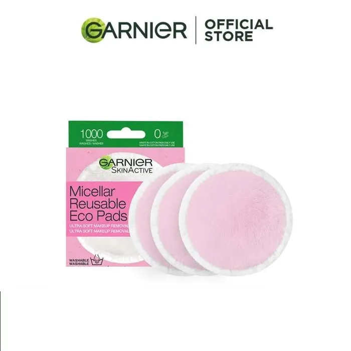 Garnier Micellar Reusable Eco Pads Kapas Wajah Reusable berbahan Micro-Fibre, dapat digunakan hingga 1000x. Petunjuk penggunaan: Tuangkan Garnier...