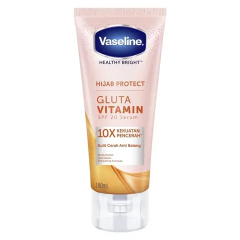 • Vaseline Hijab Protect Gluta Vitamin SPF 20 Body Serum dengan 10x Kekuatan Pencerah • Dengan refreshing formula & energizing perfume Formula ringan, tidak lengket dan disertai dengan wangi menyegarkan yang tahan lama sebagai penyemangat harimu • Dengan GlutaGlow yang mengaktifkan proses pembaruan kulit dari dalam (epidermis) dengan 10x kekuatan pencerah • Mengandung 10x Multivitamin, Niacinamide, Vitamin C & E untuk menutrisi kulit dengan intensif hingga ke lapisan terdalam • Mengandung Vaseline Jelly yang dikenal dapat mengembalikan kelembapan alami kulit • Tekstur serum yang ringan dan tidak lengket Vaseline SPF 20 Even Tone Refreshing Serum kini hadir dengan formulasi yang diperbarui: Vaseline Hijab Protect Gluta Vitamin SPF 20 Serum. GlutaGlow Mengaktifkan proses pembaruan kulit dari dalam (epidermis) dengan 10x kekuatan pencerah^, untuk mencerahkan kulit di tangan dan tubuh Refreshing Formula & Energizing Perfume Formula ringan, tidak lengket dan disertai dengan wangi menyegarkan yang tahan lama sebagai penyemangat harimu Dengan tekstur serum yang ringan dan tidak lengket, serta dengan formulasi efektif yang memanfaatkan kekuatan bahan skincare canggih untuk mengatasi kulit belang karena sinar matahari yang dapat menembus pakaian. Hasilnya: kulit anda menjadi lebih cerah, terlindungi dari belang. Vaseline sebagai brand Hand Body Lotion yang telah dipercaya selama ratusan tahun, percaya bahwa kulit yang benar-benar sehat dapat dimiliki oleh setiap orang, tanpa terkecuali. Untuk itu Vaseline membantu memperbaiki kulit dengan perawatan tubuh yang berkualitas dan kualitas hidup masyarakat yang membutuhkan di seluruh dunia. Melalui misi kemanusiaan secara global, yakni Vaseline Healing Project, Vaseline menyumbangkan lebih dari 1 juta produk Vaseline melalui mitra klinik dan rumah sakit, memberikan pelatihan mengenai kesehatan kulit bagi tenaga kesehatan, dan membantu memperbaiki kondisi kulit masyarakat di daerah yang paling membutuhkan.