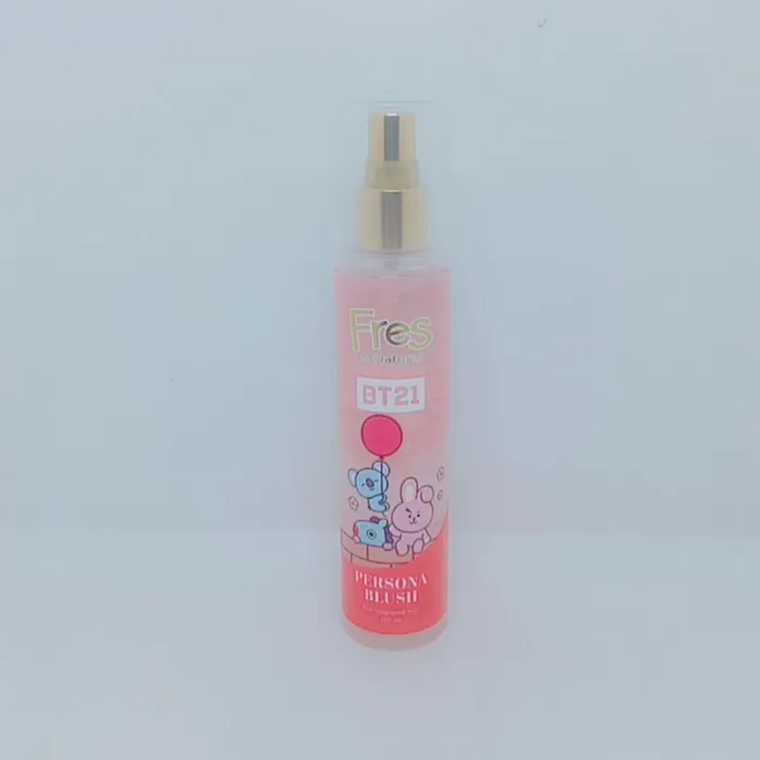 Fres & Natural with BT21 (Special Edition) dengan wangi yang tahan lama Fine fragrance mist yang memberikan kesan attractive, sweet, fun & cheerful, dari perpaduan wangi buah dan bunga. Persona Blush - Delightful sweet Top : Pear, Raspberry, Strawberry Middle : Freesia, Jasmine, Peach, Violet Base : Ambery, Gourmand, Musky Cara Penggunaan: Semprotkan pada tubuh/pakaian (kain) Keunggulan: - Wangi unik dan tahan lama - Tidak meninggalkan noda - Tidak menimbulkan iritasi & sudah bersertifikat halal MUINo reviews found