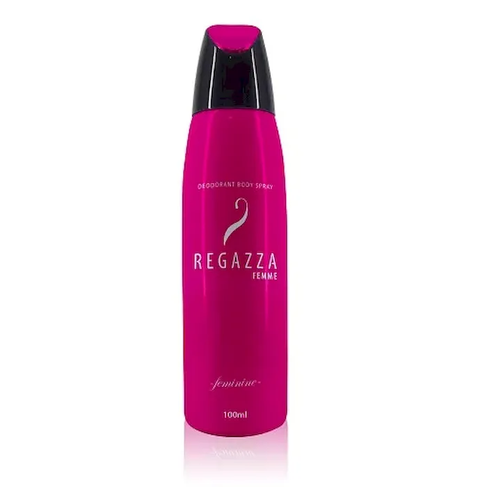 REGAZZA FEMME Deodorant Spray Feminine khusus untuk wanita beraktivitas tinggi. Kandungan bahan anti bakteri untuk menjaga kesegaran tubuh. Formulasinya dalam bentuk microspray lebih mudah terserap ke dalam kulit, sehingga dapat mengontrol keringat berlebih dan membuat kulit terasa segar. Dengan keharuman floral oriental, fougere manis dan cedarwood, Regazza Femme Feminine diciptakan sebagai aroma yang ideal untuk wanita yang aktif wanita mutakhir yang mencari kesempurnaan - yang The One, dan tidak akan kompromi. Wanita dengan gairah untuk kesempurnaan - Passion for Perfection.