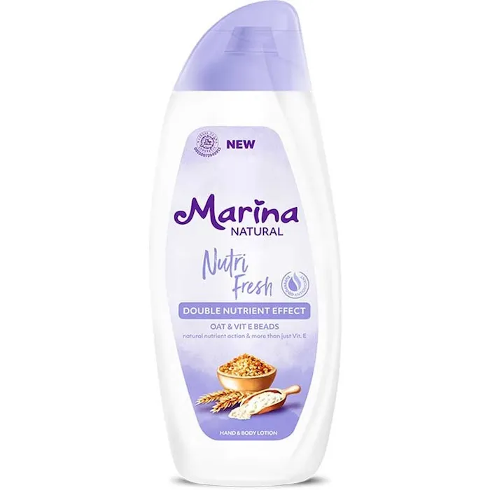 Kulit tubuh yang sehat dan terawat adalah dambaan setiap wanita. untuk itu dibutuhkan suatu perawatan khusus yang membantu merawat kulit tubuh Anda. Marina menghadirkan hand body lotion yang tidak hanya membuat kulit tubuh menjadi sehat tapi membuat kulit tubuh menjadi cerah dan terawat. Merupakan hand body lotion yang membantu merawat kulit tubuh Anda dengan menutrisinya dari dalam. Marina Natural Nutri Fresh mengandung vitamin E yang membantu melindungi kulit dari sinar UV matahari. Selain itu, dengan formula Natural Nutri Active Benefit yang dapat merawat kulit tubuh tetap sehat. Hadir dalam kemasan lebih besar dan lebih hemat 350ml.