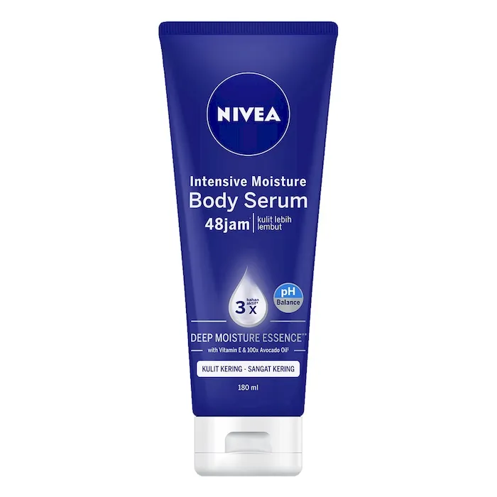 Masalah kulit kering memang mengganggu dan membuat kita kurang percaya diri. Karena itu, NIVEA sebagai ahli perawatan kulit dengan pengalaman lebih dari 100 tahun mengembangkan serum khusus agar kulit tampak sehat setiap saat. Keunggulan NIVEA Intensive Moisture body serum: -Masalah kulit kering dapat teratasi secara nyata dalam waktu 24 jam. -Kulit senantiasa terasa lembut dan kenyal. -Kelembaban kulit terjaga dengan baik. Bagaimana cara kerjanya: - Setiap tetesnya mengandung 96% kemurnian Vitamin E yang membantu mengatasi masalah kulit kering, kasar, dan pecah-pecah. - Grape seed extract (Ekstrak Biji Anggur) memberi nutrisi tambahan untuk kulit. - SPF 25 PA++ memberi perlindungan optimal bagi kulit dari sinar UVA dan UVB. - Formula serum yang ringan, tidak lengket, dan cepat meresap ke dalam kulit. - Teknologi Hydra IQ membantu pembentukan saluran hidrasi alami kulit, menjaga kelembaban kulit selama lebih dari 24 jam.No reviews found