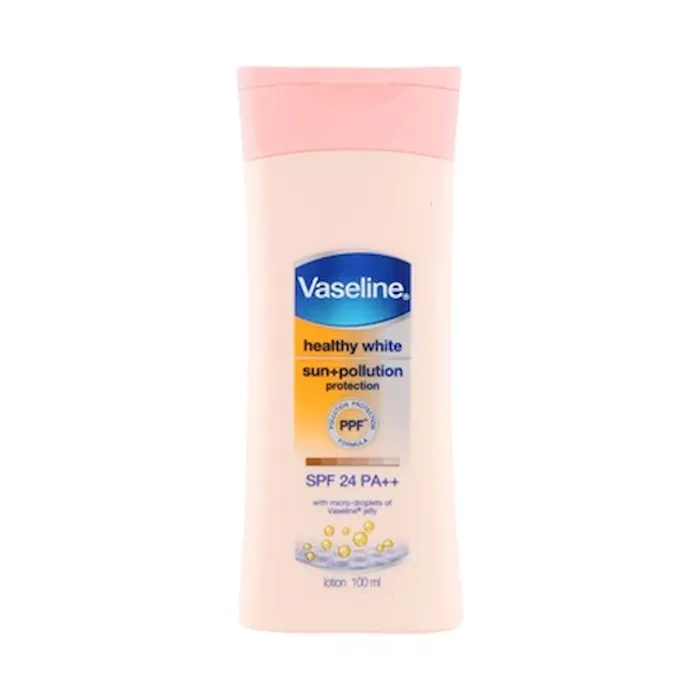 Terpapar sinar UV, polutan, dan hal berbahaya lain setiap hari dapat memicu produksi melanin, sehingga membuat kulitmu tampak lebih gelap dan rusak. Vaseline Healthy White Sun + Pollution Protection SPF24 mengandung bahan-bahan aman, yang membantu mengembalikan kecerahan kulit. Triple sunscreens melindungi kecerahan kulit dari kerusakan lebih lanjut, membuatnya lebih sehat dan lebih cerah seketika. Menjaga kulit tetap cerah merata walaupun berada dibawah sinar matahari. CARA PENANGANAN : Jangan berada terlalu lama dibawah paparan sinar matahari, walaupun menggunakan produk yang mengandung sunscreen. Apabila terjadi iritasi, hentikan penggunaan dan segera konsultasikan ke dokter. CARA PENGGUNAAN : Gunakan dua kali sehari untuk hasil terbaik. Tunggu hingga meresap secara menyeluruh agar lotion tidak meninggalkan noda di baju. CARA PENYIMPANAN : Simpan produk ditempat yang terhindar dari sinar matahari KOMPOSISI : Water, ethylhexyl salicylate, glycerin, stearic acid, phenylbenzimidazole sulfonic acid, glycol stearate, niacinamide, PEG-100 stearate, butyl methoxydibenzoylmethane, dimethicone, phenoxyethanol, glyceryl stearate, potassium hydroxide, caprylyl glycol, carbomer, cetyl alcohol, xanthan gum, perfume, sodium hydroxide, disodium EDTA, stearamide AMP, BHT, methylisothiaolinone.No reviews found