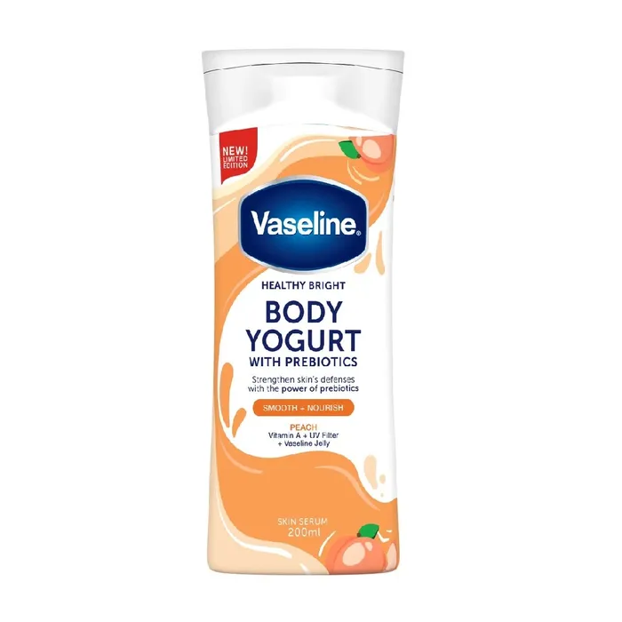 Dengan Prebiotics & Vaseline Jelly Jadikan kulit terasa lebih halus dan tetap sehat Sebagai Hand & Body Lotion No.1^ di Indonesia, Vaseline percaya semua orang berhak memiliki kulit yang sehat, oleh karena itu Vaseline menciptakan Vaseline Body Yogurt Skin Serum Peach. Vaseline Body Yogurt menggabungkan Prebiotics dan Vaseline Jelly untuk memperkuat pertahanan kulit dan memperbaiki kelembapan kulit, jadikan kulit terasa lebih kenyal dan tetap sehat. Formula cepat menyerap dan tidak lengket, mengandung ekstrak Peach, memperbaiki kelembapan kulit dengan 3 cara: Melindungi dengan prebiotics Menghaluskan dengan kombinasi Vitamin A dan UV Filter Menutrisi dengan ekstrak peach ^Kalkulasi PT Unilever Indonesia Tbk berdasarkan data value NielsenIQ Retail Index Services untuk Hand and Body Lotion kategori Skincare periode Maret 2021 - Februari 2022 di Indonesia. (Copyright � 2022, NielsenIQ) Vaseline sebagai brand Hand Body Lotion yang telah dipercaya selama ratusan tahun, percaya bahwa kulit yang benar-benar sehat dapat dimiliki oleh setiap orang, tanpa terkecuali. Untuk itu Vaseline membantu memperbaiki kulit dengan perawatan tubuh yang berkualitas dan kualitas hidup masyarakat yang membutuhkan di seluruh dunia. Melalui misi kemanusiaan secara global, yakni Vaseline Healing Project, Vaseline menyumbangkan lebih dari 1 juta produk Vaseline melalui mitra klinik dan rumah sakit, memberikan pelatihan mengenai kesehatan kulit bagi tenaga kesehatan, dan membantu memperbaiki kondisi kulit masyarakat di daerah yang paling membutuhkan.No reviews found