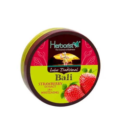 Lulur Tradisional Bali dengan ekstrak strawberry alami dan diperkaya dengan whitening, berfungsi menghaluskan, memperlambat proses penuaan dini, dan membuat kulit tampak lebih cerah.