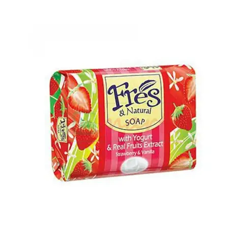 Fres Strawbery & Vanila Fres & Natural Soap Dibuat dengan Yogurt dan Real Fruit Extracts Untuk kulit yang sehat dan segar Memiliki wewangian buah...