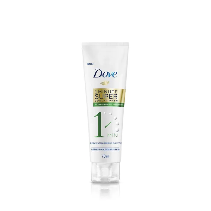 Kurangi Rambut Rontok Hingga 99%* *dengan pemakaian teratur, VS non-conditioning shampoo Baru, Dove 1 Minute Super-Conditioner, generasi conditioner terkini yang diperkaya dengan kekuatan transformasi serum kapsul. Dove Intensive Hairfall Treatment 1 Minute Super Conditioner menguatkan dan memperbaiki kembali rambut yang rapuh. Mengurangi 99% rambut rontok. Untuk rambut lebih kuat hanya dalam 1 menit.