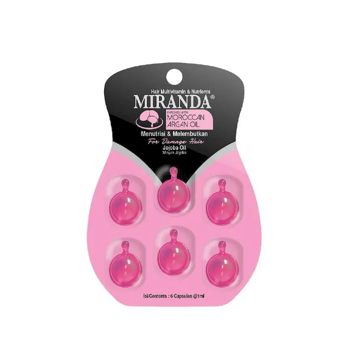 Miranda Hair Vitamin diperkaya dengan vitamin kompleks dan pelembab untuk melindungi rambut Anda dari sinar matahari. Variant : Aloevera Eclipta Alba Jojoba Oil Kukuinut Manfaat Perlindungan ekstra dari efek sinar matahari Membuat rambut akan lembut dan bersinar Diperkaya dengan ekstrak alami khusus untuk nutrisi rambut rambut Vitamin A dan E Keunggulan Mengembalikan rambut halus dan mudah untuk mengaturnya Melembutkan & memberi kilau pada rambut Memperbaiki kondisi rambut yang kering, pecah - pecah & mudah patah Pemakaian Setelah Keramas dengan shampoo, oleskan vitamin rambut Miranda dengan cara dipijat-pijat sampai akar ujung rambut .