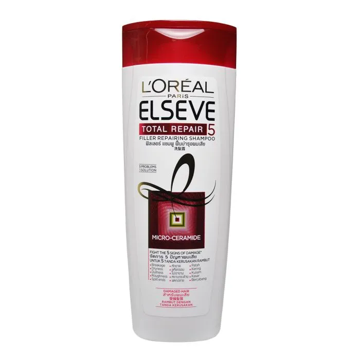Rambut anda berhak mendapatkan yang terbaik. Temukan rangkaian shampo untuk berbagai jenis masalah rambut yang diformulasikan oleh pakar perawatan rambut L’Oreal Paris. L'Oreal Paris Total Repair 5 Shampoo membantu melawan 5 tanda kerusakan rambut: rontok karena patah, kering, kusam, rapuh, dan bercabang. Mengandung Ceramide, replika bahan alami rambut yang akan membantu memperbaiki titik kerusakan pada rambut sekaligus merawat kekuatan batang rambut. Memperbaiki rambut 10X*. Sebuah formula perawatan yang sangat sesuai dengan cuaca dan kondisi rambut Indonesia**. Manfaat: 5 masalah rambut, 1 solusi Diformulasikan khusus untuk rambut dengan tanda kerusakan Membantu melawan tanda-tanda kerusakan rambut Rambut terasa lebih lembut dan berkilau indah Cara Pakai: Gunakan pada rambut yang telah dibasahi sampai berbusa, lalu bilas. Jika terkena mata, bilas segera. *Berdasarkan uji konsumen menggunakan shampo, kondisioner, dan masker. **Berdasarkan uji konsumen pada teknologi shampo L'Oreal ParisNo reviews found