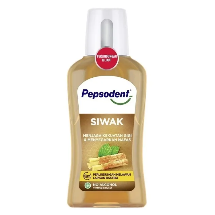 Pepsodent dengan bangga memperkenalkan inovasi terkini untuk perawatan mulut Anda, Mouth Wash Halal Siwak dari Pepsodent ini dirancang khusus dengan ekstrak siwak alami. Penyegar mulut ini diformulasi untuk memelihara gigi kuat dan nafas segar, memberikan perawatan menyeluruh ketika digunakan bersama sikat dan pasta Gigi Siwak dari Pepsodent. Manfaat utama dari Mouthwash Siwak ini adalah kekuatannya yang berasal dari alam, memberikan perlindungan hingga 18 jam* dari plak dan bakteri yang tidak diinginkan. Diformulasikan tanpa alkohol, Mouthwash ini menawarkan kenyamanan dan kehalalan yang diharapkan, tanpa meninggalkan rasa terbakar. Terinspirasi dari kearifan Sunnah, perawatan gigi dan mulut Pepsodent memahami pentingnya menggunakan bahan-bahan yang mendukung kesehatan mulut. Ekstrak siwak alami dalam Mouthwash Pepsodent ini berfungsi untuk mengurangi penumpukan plak dan tartar, membantu Anda dan keluarga lebih dekat menjalankan sunnah sehari-hari dengan mudah. Demi mendapatkan manfaat maksimal, awali dan akhiri hari Anda dengan rangkaian Pepsodent Siwak, termasuk sikat gigi, pasta gigi, dan obat kumur. Untuk menjaga senyum terbaik Anda, gunakanlah obat kumur 2 kali sehari setelah menyikat gigi. Caranya mudah, pertama isi tutup botol hingga 20 mL kemudian kumurlah sekitar 30 detik lalu buang, jangan ditelan. Lebih dari dua dekade, Pepsodent telah menjadi pelopor dalam mendidik dan mempromosikan kesehatan gigi dan mulut di Indonesia, mencapai jutaan melalui inisiatif pendidikan. Aktivitas kesehatan gigi dan mulut yang sudah dilakukan oleh Pepsodent termasuk salah satunya adalah program sekolah yang mencapai lebih dari lima juta orang setiap tahunnya. Dukung misi Pepsodent dengan membeli Pepsodent Mouthwash Siwak.