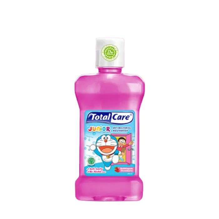 Pertama dan satu - satunya mouthwash untuk anak - anak. Berfungsi untuk memperkuat gigi, mencegah gigi berlubang & mengurangi pertumbuhan bakteri jahat di mulut & gigi. Dengan rasa Bubblegum Strawberry yang disukai anak - anak serta sudah dilengkapi sertifikat "Halal" dari MUI. Total Care Junior Mouthwash diperuntukkan bagi anak usia 6 - 12 thNo reviews found