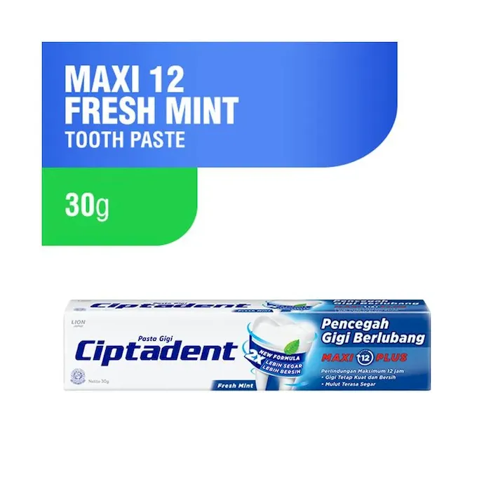 Gunakan selalu Pasta Gigi Ciptadent untuk melindungi gigi Anda dari kotoran dan kuman penyebab gigi berlubang. Pasta Gigi Ciptadent memiliki kandungan Pro Xyliton Complex (Xyliton + IPMP + Fluoride) yang dapat membantu mencegah gigi berlubang dan mengurangi plak Natural Calcium. Tidak hanya itu saja, Pasta gigi yang satu ini juga hadir dengan kandungan alami Mint yang membuat nafas segar dan mulut terasa lebih bersih hingga 12 jam. Pasta Gigi Ciptadent tersedia dalam 2 varian yaitu Pasta Gigi Ciptadent Fresh Mint dan Pasta Gigi Ciptadent Cool Mint dengan berbagai ukuran kemasan yang dapat Anda pilih sesuai dengan kebutuhan Anda dan keluarga Anda sehari-hari.No reviews found