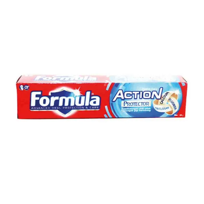 PASTA GIGI FORMULA PROTEKSI Dengan 3 aksi perlindungan Membersihkan Gigi Micro Calciumnya bekerja membersihkan kotoran/noda yang menempel pada gigi. Melindungi Gigi Pro-Fluoride melindungi dan mencegah gigi berlubang Menyegarkan Nafas Rasa Double Mint memberikan sensasi nafas segar tahan lamaNo reviews found