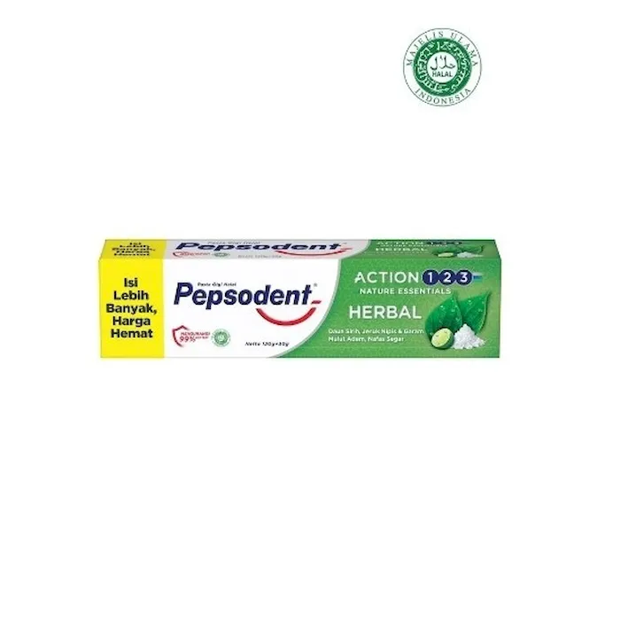 Pepsodent Herbal Pasta Gigi untuk mencegah gigi berlubang dengan kesegaran alamiah herbal (daun sirih, jeruk nipis dan garam). Pepsodent herbal dengan...
