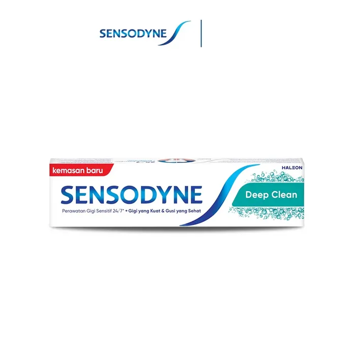 Pasta Gigi Sensodyne Deep Clean membantu menenangkan saraf di dalam gigi dan memberikan perlindungan 24 jam* terhadap gigi sensitif. Dengan foam boost technology yang dapat menghasilkan busa lebih banyak, juga memberikan kesegaran yang lebih lama. Tersertifikasi Halal. Mengapa Memilih Sensodyne Deep Clean Memberikan perlindungan yang lebih lama terhadap gigi sensitif*. Dengan busa lebih banyak. Membantu mengurangi timbunan plak*. Memberikan semua manfaat pasta gigi reguler* Cara Kerja Sensodyne Deep Clean diformulasikan khusus untuk gigi sensitif. Saat enamel terkikis dan terjadi resesi gusi, dentin akan terekspos. Hal ini dapat menyebabkan rasa ngilu yang dipicu oleh makanan dan minuman panas atau dingin. Sensodyne Deep Clean membantu menenangkan saraf di dalam gigi dan memberikan perlindungan 24 jam* terhadap gigi sensitif. Dengan foam boost technology yang dapat menghasilkan busa lebih banyak, juga memberikan kesegaran yang lebih lama. Cara Penggunaan Gunakan 2 kali sehari secara teratur sebagai pasta gigi regular Anda. Untuk anak usia dibawah 12 tahun: konsultasikan pada dokter gigi atau pakar kesehatan gigi terlebih dahulu. Jangan sampai tertelan. Jauhkan dari jangkauan anak-anak. Untuk perlindungan optimal terhadap gigi sensitif, gunakan bersamaan dengan sikat gigi Sensodyne.