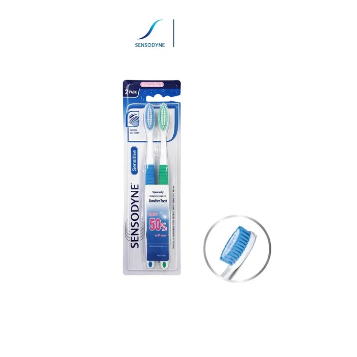 Sikat gigi Sensodyne Sensitive didesain khusus untuk penderita gigi sensitif. Bulu sikat lembut serta aman untuk gusi dan gigi sensitif. Mengapa Memilih Sensodyne Sensitive Kepala sikat yang lebih lebar dengan leher yang ramping sehingga mudah menjangkau area di dalam mulut. Ujung bulu sikat berbentuk bulat sehingga nyaman untuk gigi sensitif dan lembut untuk gusi. Gagang sikat yang lebih lebar dan nyaman digunakan ketika menyikat gigi. Direkomendasikan untuk mengganti sikat gigi setiap tiga bulan sekali. Untuk perlindungan optimal terhadap gigi sensitif, gunakan bersamaan dengan pasta gigi Sensodyne.