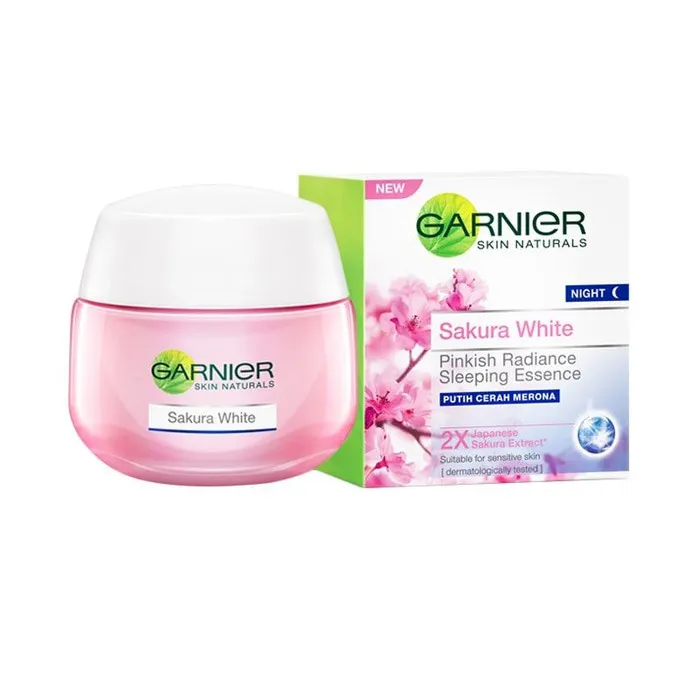 Garnier Sakura White Night Krim essence malam Untuk wajah putih cerah merona Diperkaya dengan dua kali Ekstrak Sakura, bunga lembut dari Jepang dengan...