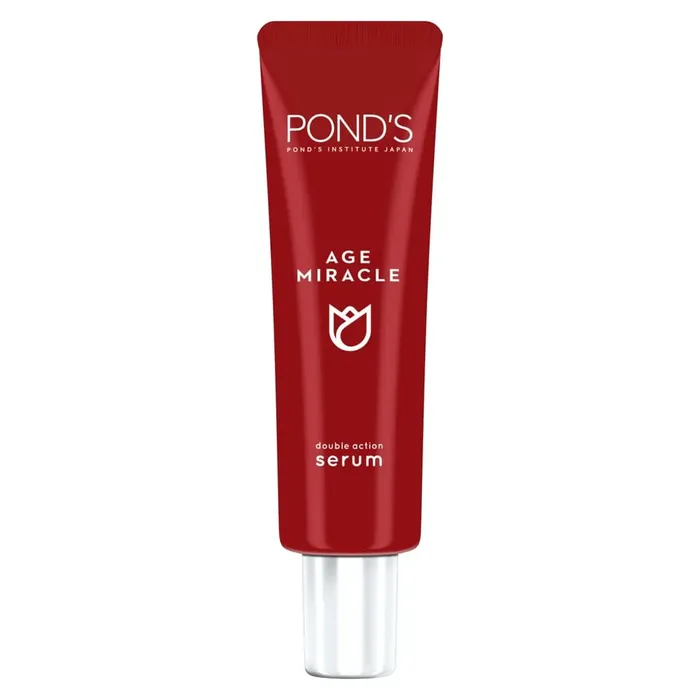 Kulitmu terlihat kusam dan noda hitam kini jadi sulit hilang? Kulit lebih sering terasa kering? Atau bahkan garis - garis halus mulai terlihat jelas di muka? Itu tandanya kulitmu telah berubah, tidak sama seperti dulu dan mulai mengalami tanda - tanda penuaan. Tanpa kamu sadari, siang dan malam hari, diluar and didalam ruangan, kamu terpapar agresors dan tidak dapat menghidari faktor-faktor yang mengubah kulitmu. Siang: Work-related Stress, Polusi Dalam Ruangan, Polusi Luar Ruangan, Sinar Matahari Malam: Kurang Tidur, Blue Light, Life-related Stress Itu sebabnya, perempuan butuh perwatan lebih dari face moisturizer dan serum wajah biasa. Waktunya mencoba Double Action Serum! Anti aging serum wajah terbaru dari Pond's Age Miracle Serum bekerja 2 in 1 untuk mencerahkan wajah dan melawan tanda penuaan. Skin serum ini dilengkapi dengan 30X renewal actives yang dapat bantu regenerasi sel kulit baru agar tampak muda bercahaya. Double Brigtening Actives: gabungan Next Generation Anti Aging Technology, Retinol-C Complex, Niacinamide (Vitamin B3) dan Hexyresocinol mampu menutrisi dan mencerahkan kulit hingga ke lapisan dalam epidermis. Kandungan Retinol-C Complex efektif memperbaharui sel kulit secara terus-menerus, untuk mengembalikan kilau dan cahaya kulit. Anti wrinkle serum yang teruji secara dermatologis dan klinis, dapat mencerahkan kulit kusam dan menyamarkan noda hitam, menyamarkan garis-garis halus, meningkatkan kelembapan kulit dan membuatnya terasa kenyal. Rasakan perbedaannya dalam 1 minggu pemakaian! Baik digunakan setiap pagi dan malam hari pada kulit yang telah deibersihkan, lanjutkan dengan pengunaan Pond's Age Miracle day/night cream, untuk pencegahan anti aging dan hasil yang lebih efektif! #NeverStopGlowing Cara Pakai: Setelah membersihkan wajah dan pakai essence. Pijat dan tepuk lembut agar serum meresap dan menstimulasi wajahmu.No reviews found