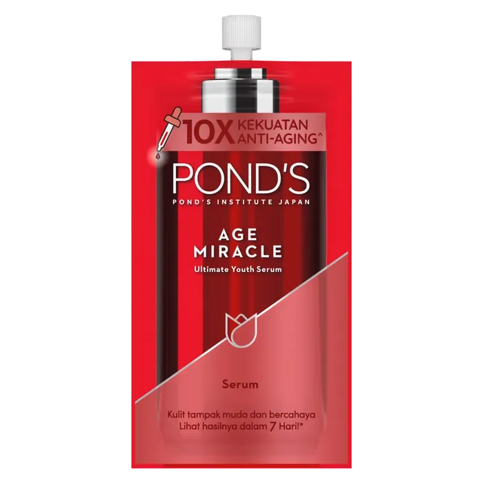 Ponds Age Miracle Ultimate Youth Serum juga diperkaya dengan Red Algae dan Fermented Bifida yang memberikan nutrisi tambahan untuk kulit, membantu memperkuat skin barrier dan melindungi kulit dari kerusakan lingkungan. Formula ringan dan cepat meresap membuat serum ini nyaman digunakan setiap hari, baik pagi maupun malam. Penggunaan rutin akan membuat kulit Anda tampak lebih muda, cerah, dan sehat. Dengan Ponds Age Miracle Ultimate Youth Serum, Anda tidak hanya merawat kulit tetapi juga meningkatkan kepercayaan diri Anda. Jangan lewatkan kesempatan untuk merasakan manfaat luar biasa dari serum ini. Segera dapatkan Ponds Age Miracle Ultimate Youth Serum dan biarkan kulit Anda bersinar dengan keindahan alami setiap hari. Kulitmu terlihat kering, kusam, dan noda hitam sulit hilang? Itu tandanya kulitmu mulai berubah dan mengalami tanda penuaan. Kamu butuh perawatan ekstra yang dapat memberikan nutrisi pada kulitmun dan melawan tanda penuaan, bahkan untuk yang belum terlihat pada wajahmu! Pond's Age Miracle menghadirkan inovasi serum terbaru dengan 10x kekuatan anti-aging, Pond's Age Miracle Ultimate Youth Serum. Teruji secara klinis untuk kulit glowing dalam 7 hari! Mengandung Triple Hyaluronic Acid, Collagen, Retinol-C, Niacinamide, Red Algae, Fermented Bifida yang efektif untuk mencerahkan, melawan tanda penuaan, melembapkan, memperkuat skin barrier, dan menjaga elastistitas kulit. Storage Directions : Simpan di tempat yang terhindar dari panas dan sinar matahari langsung Cara Pakai : Gunakan setiap pagi dan malam hari pada kulit yang telah dibersihkan, lanjutkan dengan penggunaan Age Miracle Day/Night CreamNo reviews found