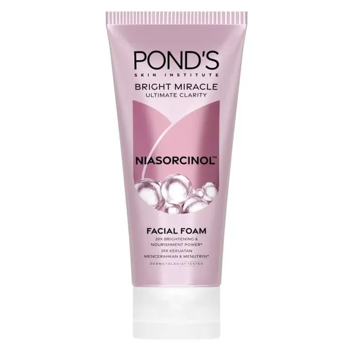 NIASORCINOLTM - Kandungan miracle terbaru dari POND's SKIN INSTITUTE, terinspirasi dari pemenang Nobel Prize untuk penelitian ilmiah perbaikan kulit Niacinamide - Kandungan mencerahkan yang menargetkan micro-repair untuk menyamarkan bintik matahari dan noda hitam untuk kulit cerah dan bercahaya E-Sorcinol - Kandungan dengan paten yang mencerahkan kulit dengan kekuatan 500x lebih kuat POND'S SKIN INSTITUTE - Didirikan dengan menggabungkan penelitian dan ilmu perawatan kulit selama bertahun-tahun untuk mewujudkan miracles dengan setiap inovasi POND’S Simpan di tempat yang terhindar dari panas dan sinar matahari langsung 1. Jika terkena mata, segera bilas dengan air. 2. Jika terjadi iritasi, hentikan penggunaan dan konsultasikan dengan dokter kulit. 3. Simpan di tempat yang terhindar dari sinar matahari langsung dan panas. Cara Pakai: Basahi wajah, buat busa pada tangan, pijat lembut pada wajah dan leher, kemudian bilas hingga bersih. Untuk hasil maksimal, gunakan bersama rangkaian Pond's Bright Miracle lainnya.No reviews found