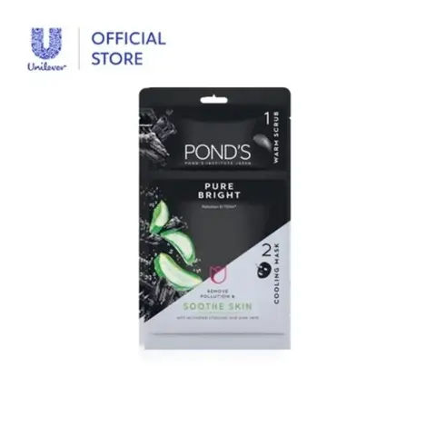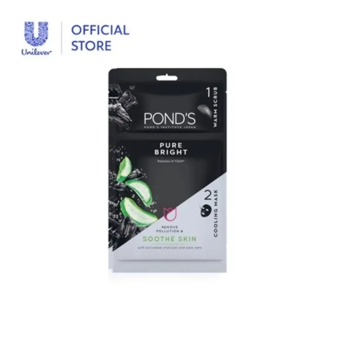 POND'S hadirkan 2in1 Sheet Mask Pertama untuk DTOXX dan nutrisi kulitmu! step 1: Kandungan scrub yang memberikan efek hangat untuk membuka pori-pori dan DTOXX kulitmu dengan activated charcoal step 2: charcoal sheet mask dengan sensasi segar dan dingin untuk menenangkan kulit & mengecangkan pori-pori. Diperkaya dengan activated Charcoal & Aloe Vera untuk menutrisi dan menenangkan kulit dari kotoran. Skincare praktis untuk dtoxx polusi dan nutrisi kulit dalam 1 kemasan!